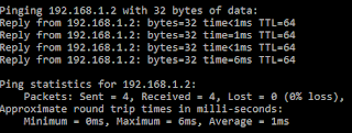 coba ping windows ke alamat ip debian. Dengan perintah “ping 192.168.1.2”.